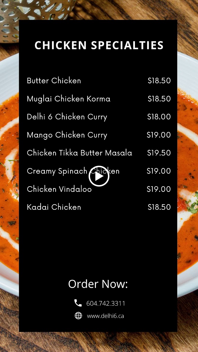 Welcome to Delhi-6 Indian Bistro, the vibrant heart of Indian cuisine located at 1766 W 7th Ave, Vancouver. With a menu that speaks volumes of authentic flavors, Delhi-6 offers a delightful variety of dishes that cater to all palates.